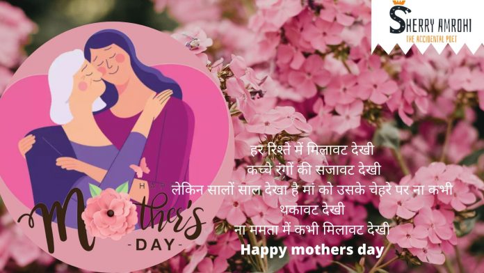 har rishte mein milaavat dekhee kachche rangon kee sajaavat dekhee lekin saalon saal dekha hai maan ko usake chehare par na kabhee thakaavat dekhee na mamata mein kabhee milaavat dekhee happy mothairs day