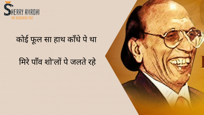 HomeA to Z Shayars A to Z ShayarsBashir Badr koi phuul sa haath kandhe pe tha by Bashir Badr By Sherry Amrohi July 22, 2020 0 408 FacebookTwitterPinterestWhatsApp - Advertisement - Sad Shayari in Hindi कोई फूल सा हाथ काँधे पे था मिरे पाँव शो’लों पे जलते रहे Sad Shayari in English koi phuul sa haath kandhe pe tha mire paañv sho.aloñ pe jalte rahe Tagsbadr bashirbasheer badarbashir badrbashir badr ghazalsbashir badr kavita koshbashir badr on dostibashir badr poetrybashir badr poetry in urdudr basheer badardr bashir badrdr bashir badr poetrymausham shayarimohabbat shayariphuul sa haathpoet bashir badrshayar bashir badr Share FacebookTwitterPinterestWhatsApp Previous articleVo Matha Ka Matla Ho Ki Honthon Ke Do Misre by Bashir BadrNext articleMahlon Men Ham Ne Kitne Sitare Saja Diye by Bashir badr Sherry Amrohihttps://www.sherryamrohi.com Related Articles A to Z Shayars Tum jab aaogi to khoya hua paogi mujhe, Birthday Shayari Main likh du tumhari umar chand sitaro se Sharabi Shayari Kuch To Sharaphat Seekh Le Ishk Sharaab Se LEAVE A REPLY Cancel reply Comment: Please enter your comment! Name:* Please enter your name here Email:* You have entered an incorrect email address! Please enter your email address here Website: Save my name, email, and website in this browser for the next time I comment. Stay Connected0FansLike3,912FollowersFollow14,700SubscribersSubscribe - Advertisement - Latest Articles A to Z Shayars Tum jab aaogi to khoya hua paogi mujhe, Birthday Shayari Main likh du tumhari umar chand sitaro se Sharabi Shayari Kuch To Sharaphat Seekh Le Ishk Sharaab Se Romantic Shayari Khushiyaan kya hotee hamen nahin pata Yaad Shayari Jo Tune Diya Use Hum Yaad Karenge Load more