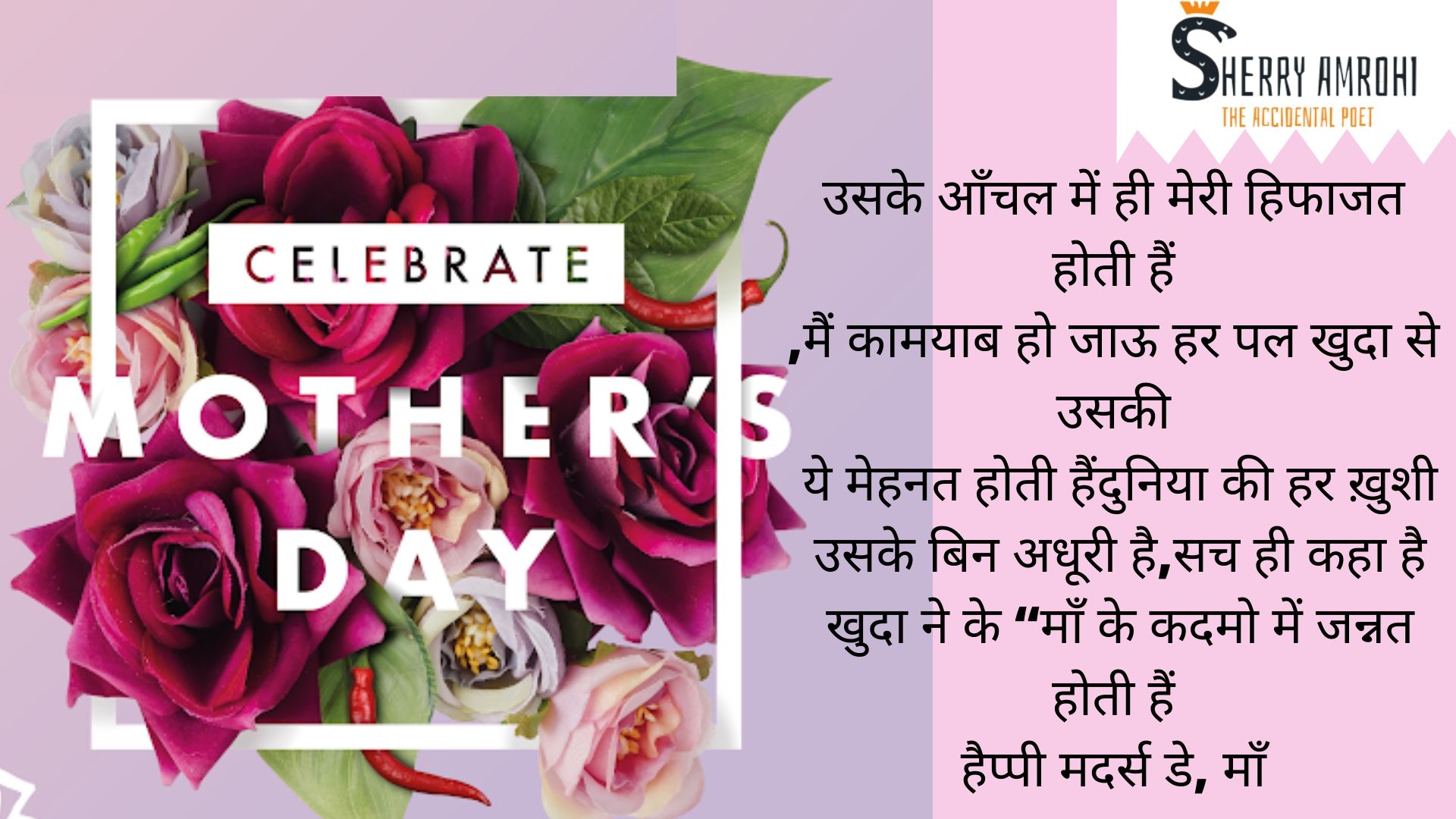 usake aanchal mein hee meree hiphaajat hotee hain ,main kaamayaab ho jaoo har pal khuda se usakee ye mehanat hotee hainduniya kee har khushee usake bin adhooree hai,sach hee kaha hai khuda ne ke “maan ke kadamo mein jannat hotee hain haippee madars de, maan